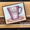 Contains the materials to make 4 different coffee themed cards. Color the mugs in your favorite colors. Images are stamped on paper suitable for alcohol ink or water based markers or colored pencils.